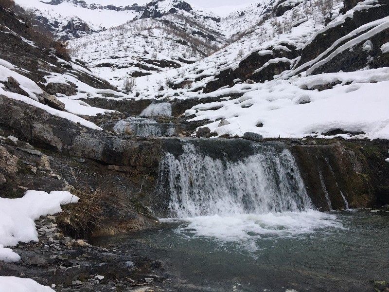 Şırnak’ın Beytüşşebap ilçesinde kışın sert yüzünü göstermesiyle birlikte şelaleler dondu. Çetin geçen kış aylarında hava sıcaklığı eksi 16 dereceye kadar düştü.