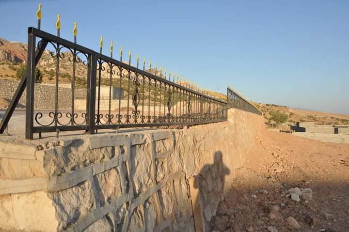 Görümlü Beldesinde yapımı süren Çok amaçlı park projesinde istinat duvarlarına demir korkuluk çekildi.