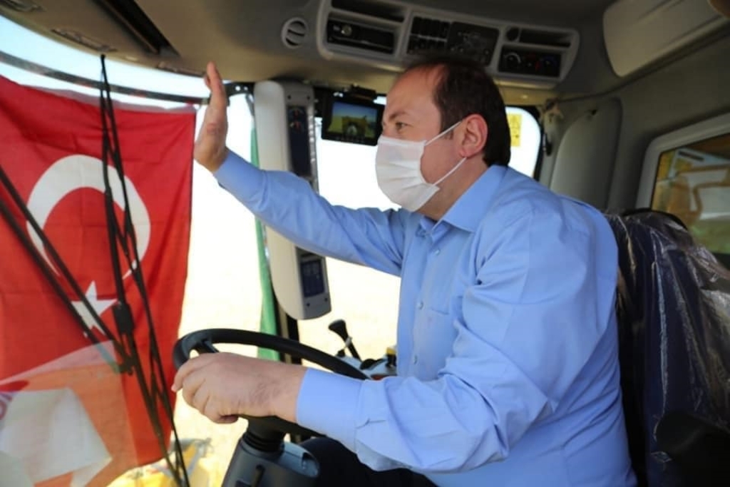 Sezonun hayırlı ve bereketli geçmesi için edilen duanın ardından Vali Pehlivan, biçerdöverin direksiyonuna geçti, bismillah diyerek buğday hasatının startını verdi. Hasatın ardından tekrar ekim yapılacak olan tarlayı traktörle sürerek çapa yapan Vali Pehlivan, sezonun tüm emektar çiftçilerimiz için hayırlı,bereketli ve bol kazançlı olması temennisinde bulundu.